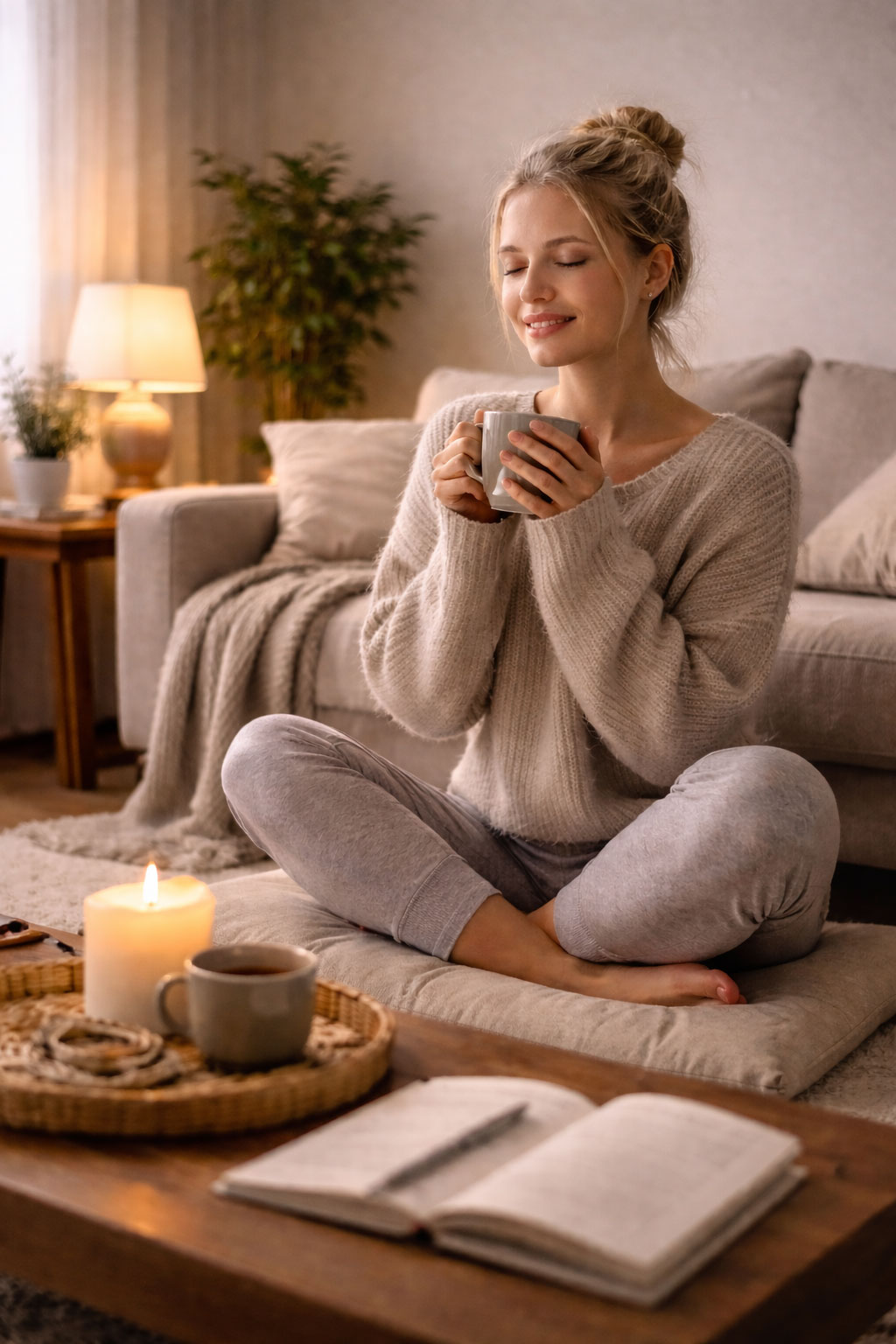 Manche Menschen lieben Kerzen und Düfte. Andere finden Ruhe eher in Ordnung, Musik, Tee oder Stille. Erlaubt ist, was sich wirklich gut anfühlt und nicht künstlich wirkt. Gerade die einfachsten Rituale sind oft die nachhaltigsten.